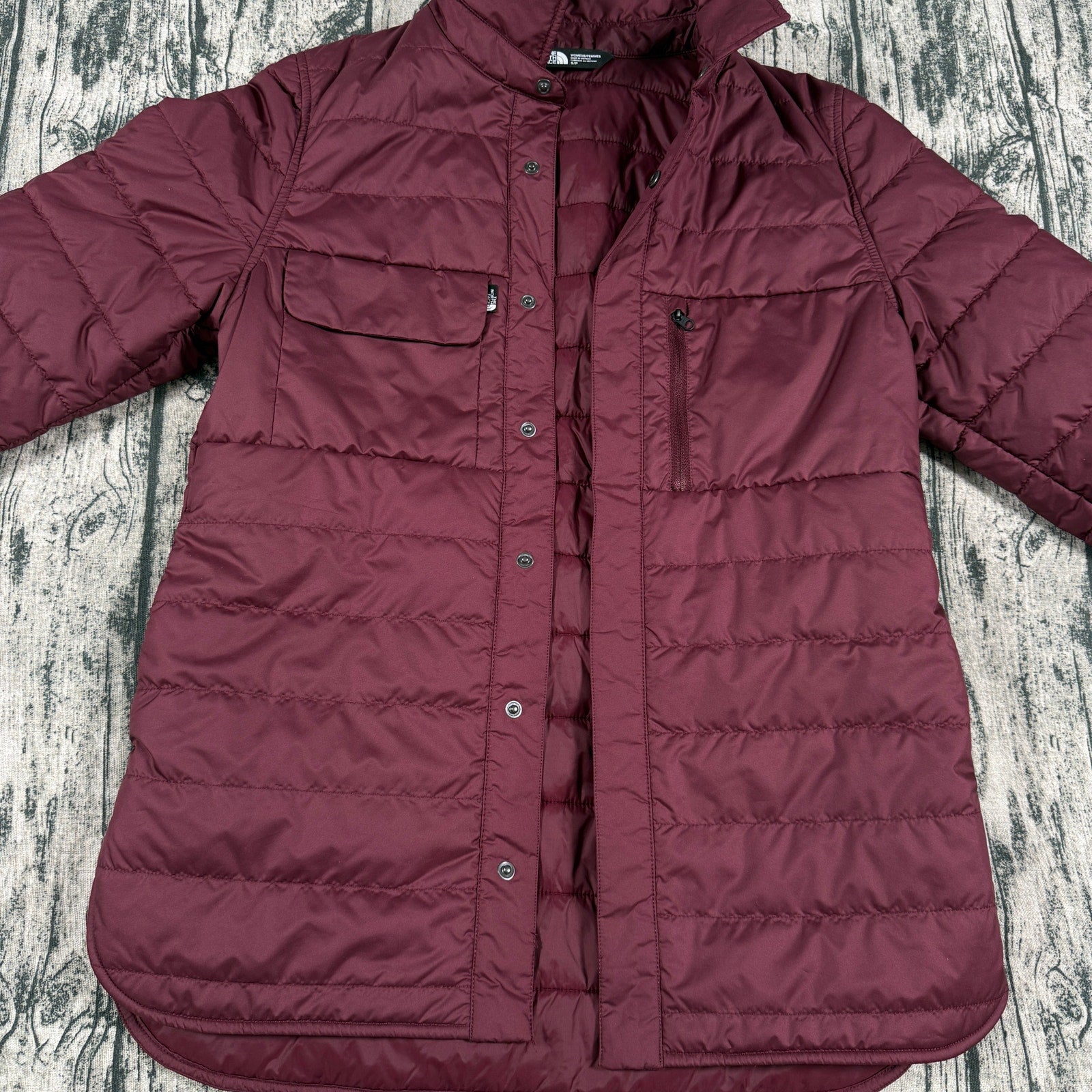 The North Face Quilted Insulated Shirt Jacket Burgundy Snap Front Women's S