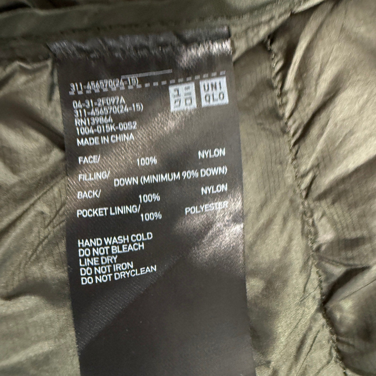 UNIQLO Ultra Light Down Puffer Packable Jacket Olive Green Black Men’s M