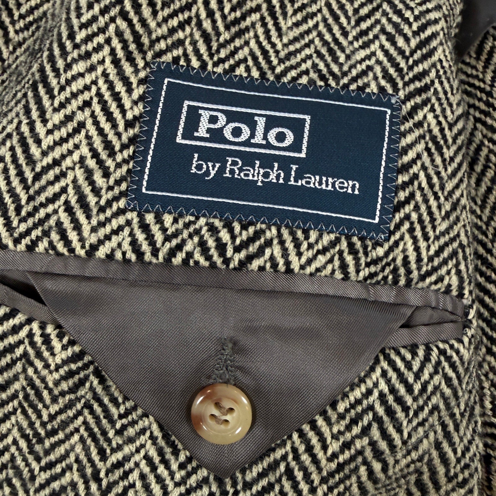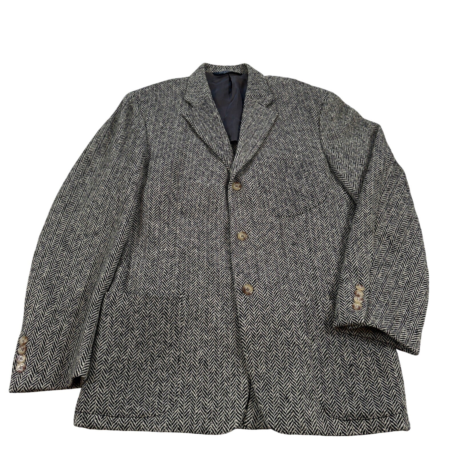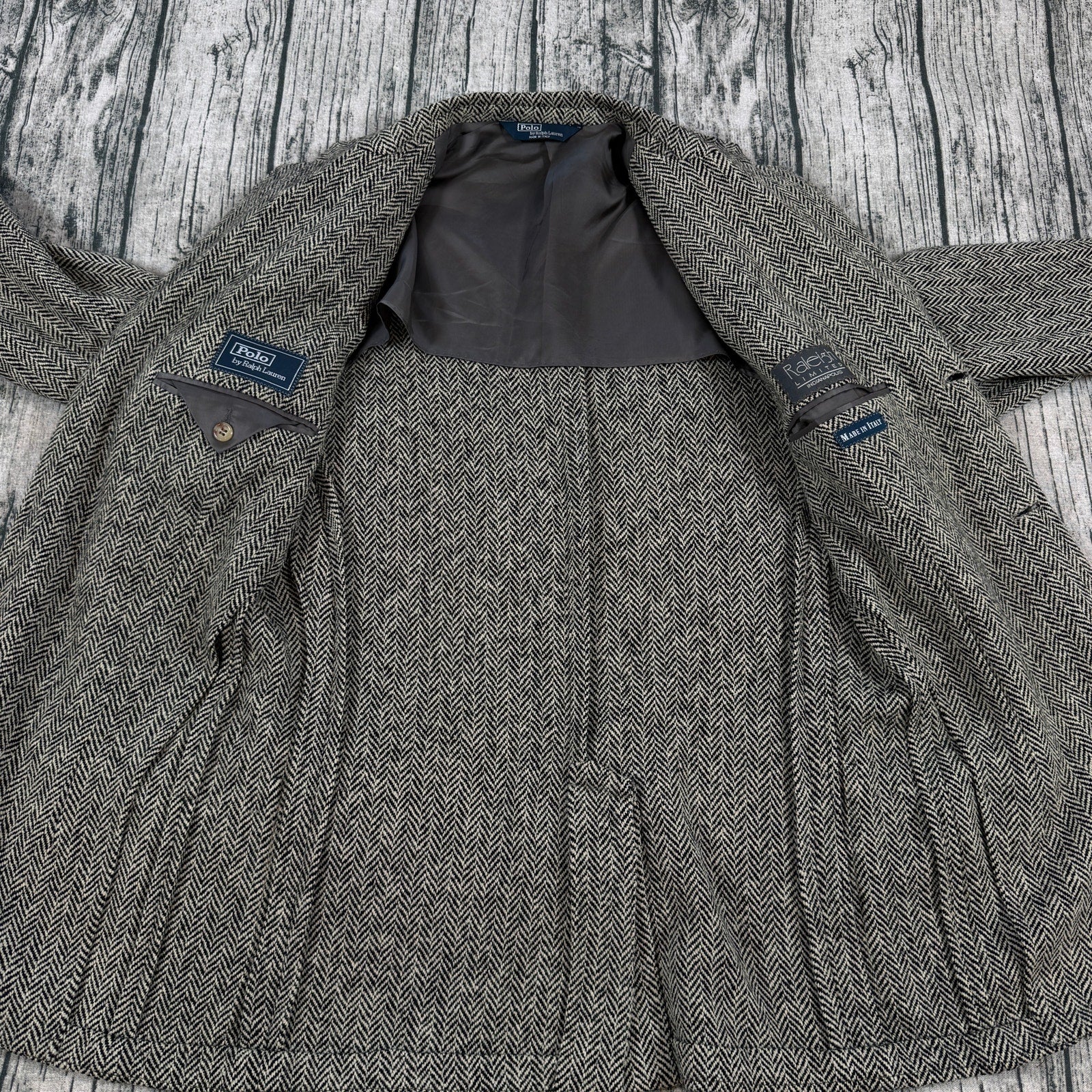 VTG Polo Ralph Lauren Tweed Jacket Wool Herringbone Sport Blazer Italy Made 42L